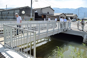 FRP検査路手摺り部の衝撃試験デモンストレーション