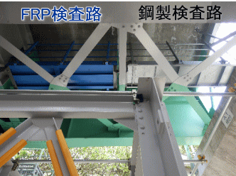 FRP検査路は鋼製製品と比較して耐久性に優れ、特に塩害などによる腐食環境地域では、その性能を十二分に発揮し維持管理費の削減に貢献します。また、軽量なFRP検査路は施工性に優れ、人力施工範囲を拡大できます。